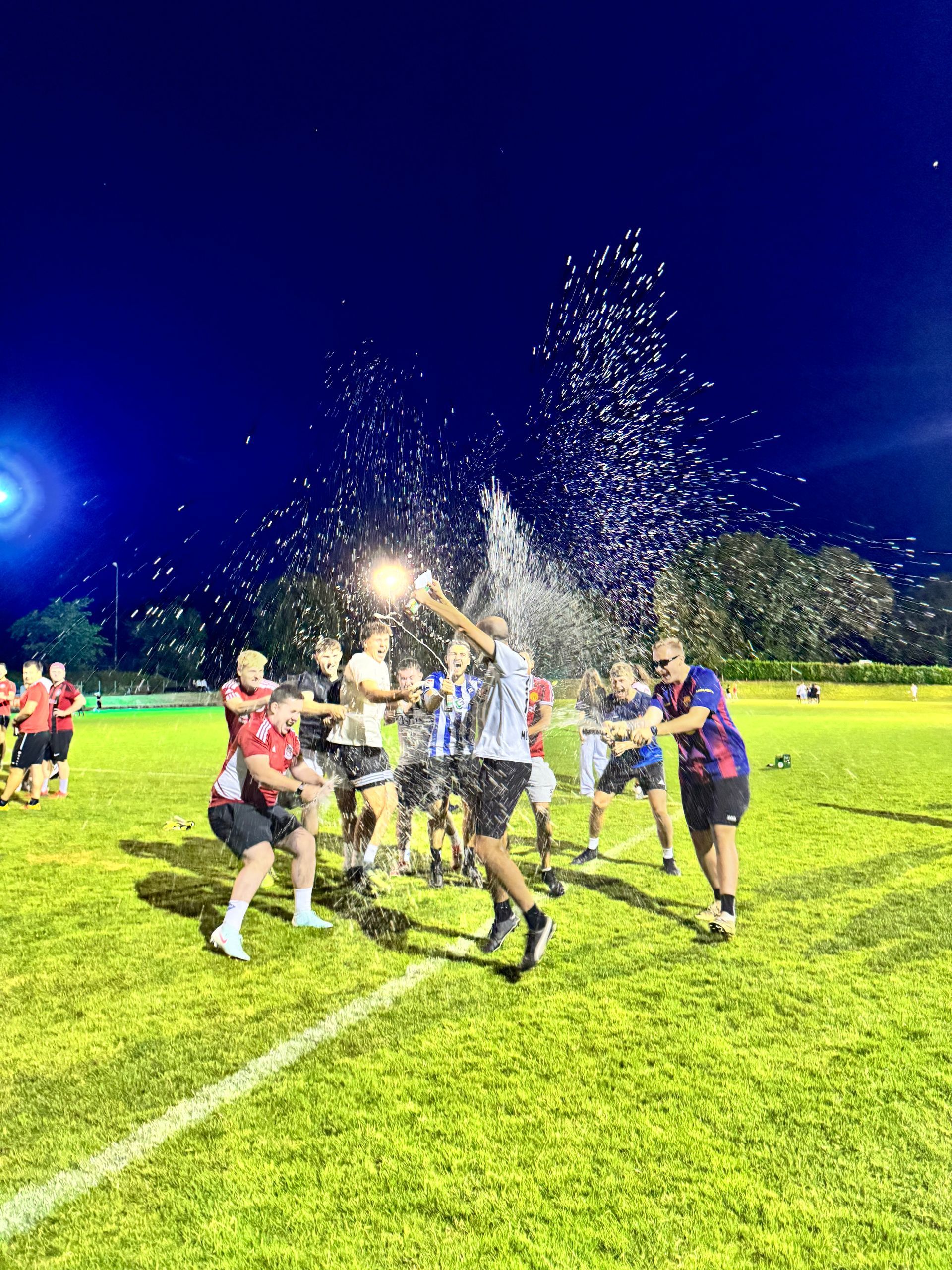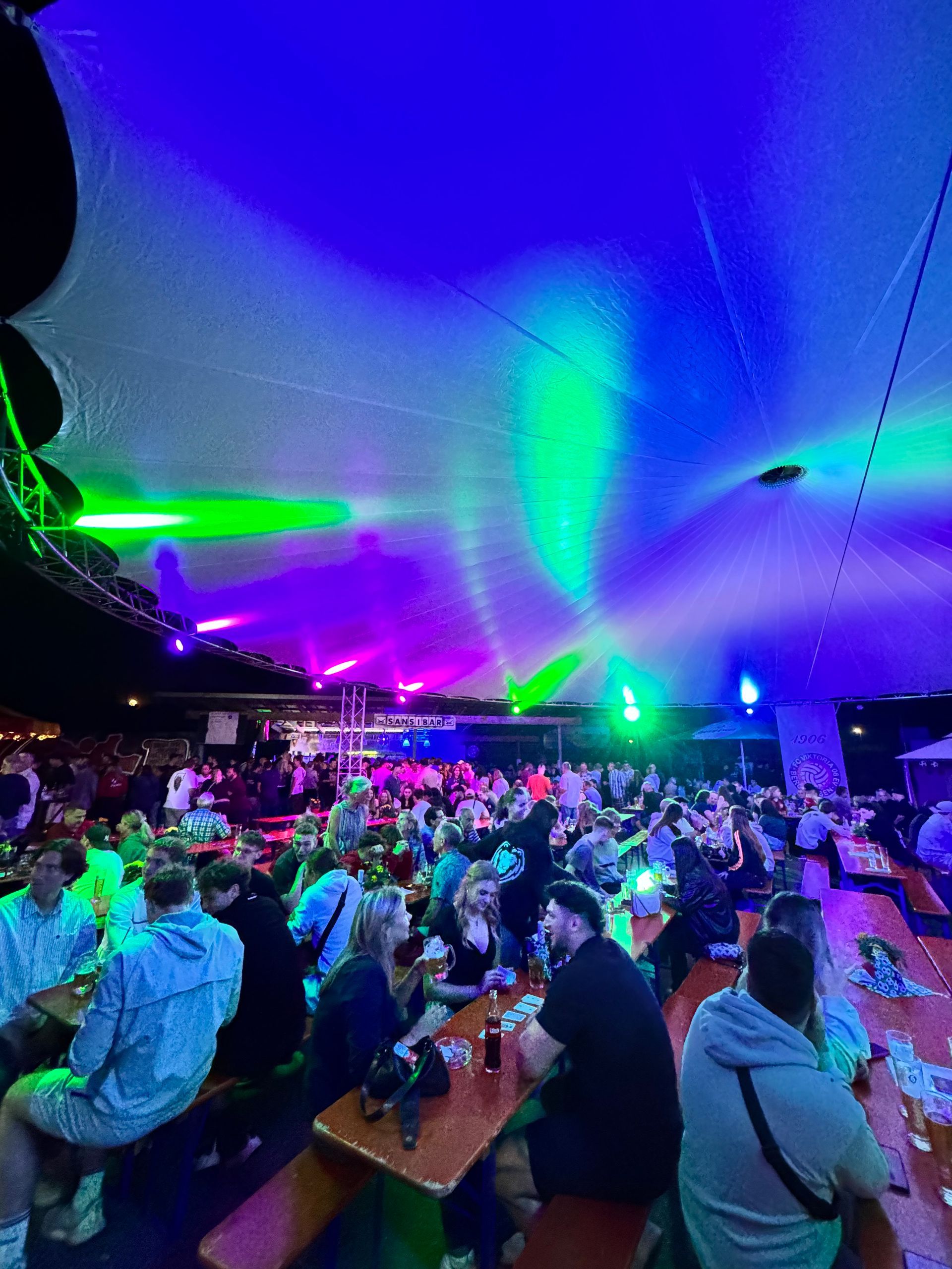 Am nächsten Morgen ging es mit Spielen der Bambini, F- und E-Junioren weiter. Die Jugendabteilung versorgte die Gäste mit Kaffee, Kuchen und belegten Brötchen. Außerdem liefen die Grills und Fritteusen auf Hochtouren und auch unser Küchen-Team um Gast-Koch Uwe hatten mit Schnitzel und vegetarischen Burgern gut zu tun. Nachdem auch die B-Jugend ein Spiel absolvierte, durften wir wie im vergangenen Jahr das orthokonzept-Ü32-Kreispokal-Finale ausrichten. Dies konnte der FV Leopoldshafen für sich entscheiden und sorgte im Anschluss für glühende Zapfhähne an unserem urigen Feuerwehr-Pilswagen. Parallel zum Elfmeter-Turnier gab DJ Sven auch am Samstag Vollgas und brachte die Sansibar zum kochen.